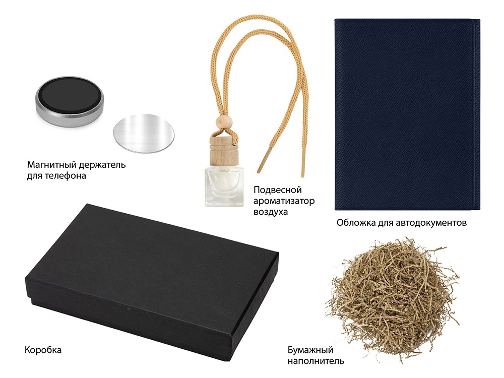 Подарочный набор с обложкой для автодокументов и автоароматизатором "вишня", темно-синий