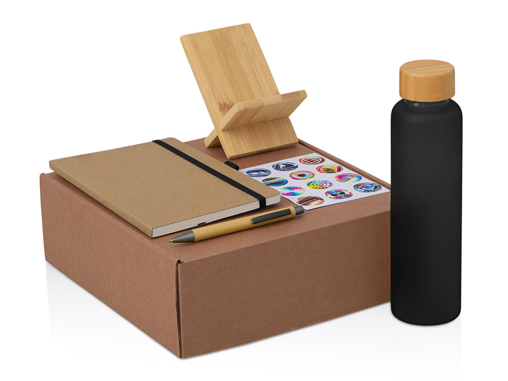 Подарочный набор с бутылкой для воды. блокнотом, ручкой и подставкой для телефона, черный