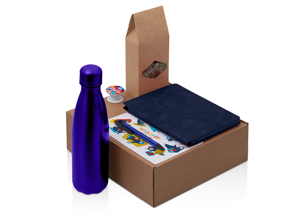 Набор с термокружкой, блокнотом, ручкой и ланчбоксом "Refreshment", голубой
