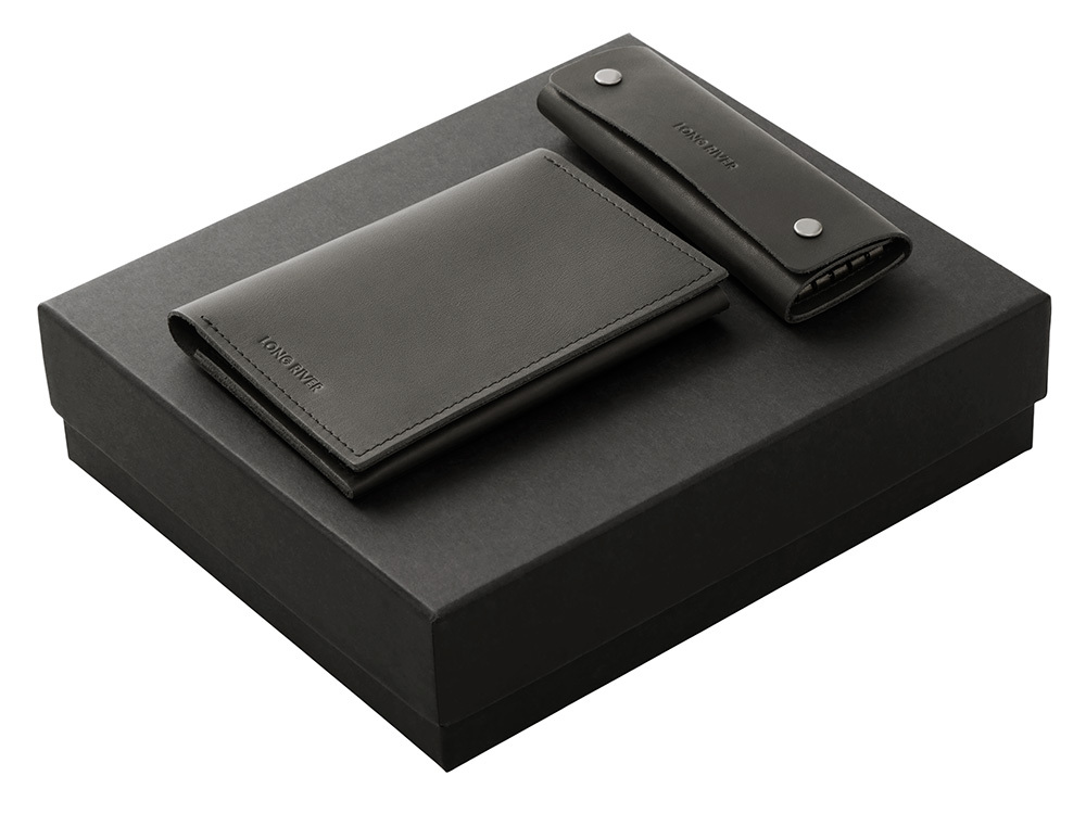 Подарочный набор Long River: обложка для паспорта, ключница (без лого Long River), черная коробка