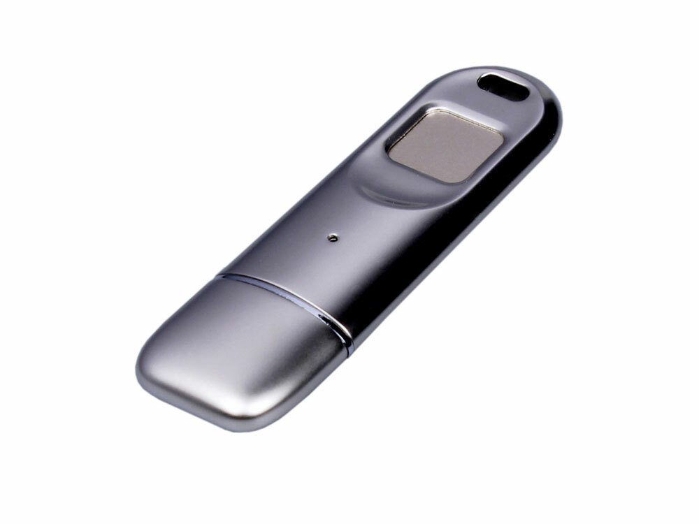 Металлическая флешка со сканером отпечатков пальцев в подарочной упаковке на 128 Гб, серебристый