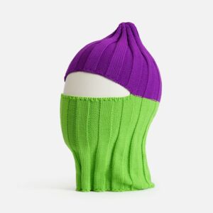 Модель: фактурная шапка-балаклава в один-три цвета, верх собран на стяг, сзади — шов. Полосы могут быть только горизонтальными.