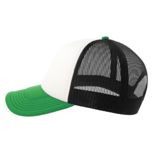 Легкая бейсболка RAPPER - культовая бейсболка-тракер, которая отлично подойдет для мероприятий, проводимых в теплое время года. - 5 клиньев, - без лобового шва, - боковые и задние панели со вставкой из мягкой сетки, - изогнутый козырек, - пластиковая застежка. Лобная часть купола: цвет близкий к Pantone White, цвет козырька - Pantone 349 C, цвет сетки - Pantone Black 6 C