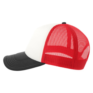 Легкая бейсболка RAPPER - культовая бейсболка-тракер, которая отлично подойдет для мероприятий, проводимых в теплое время года. - 5 клиньев, - без лобового шва, - боковые и задние панели со вставкой из мягкой сетки, - изогнутый козырек, - пластиковая застежка. Лобная часть купола: цвет близкий к Pantone White, козырёк - Pantone Black 6 C, сетка - 193 C