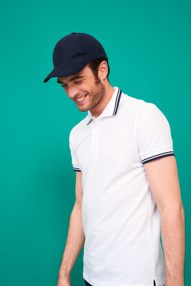 Модель бейсболки с 5-ю клиньями без лобового шва из плотного чесаного хлопка.