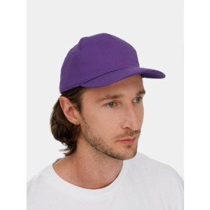Модель бейсболки с 5-ю клиньями без лобового шва из плотного чесаного хлопка.