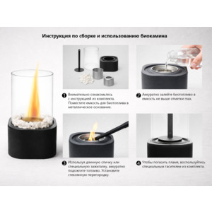 - Комплектность - стеклянная колба из закаленного стекла, металлическая заглушка, металлическое основание, декоративные камни, емкость для биотоплива