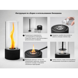 - Комплектность - стеклянные перегородки из закаленного стекла (3 шт.), металлическая заглушка, металлическое основание, емкость для биотоплива