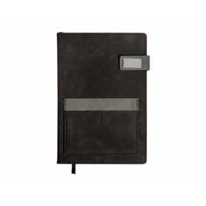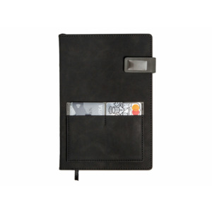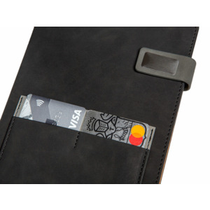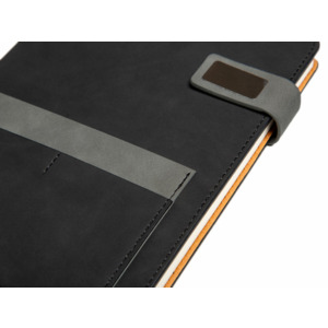 Бизнес блокнот А5 "Freya" с клапаном и карманом для визиток, твердая обложка, 128 листов, черный и свет