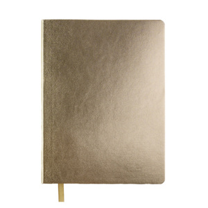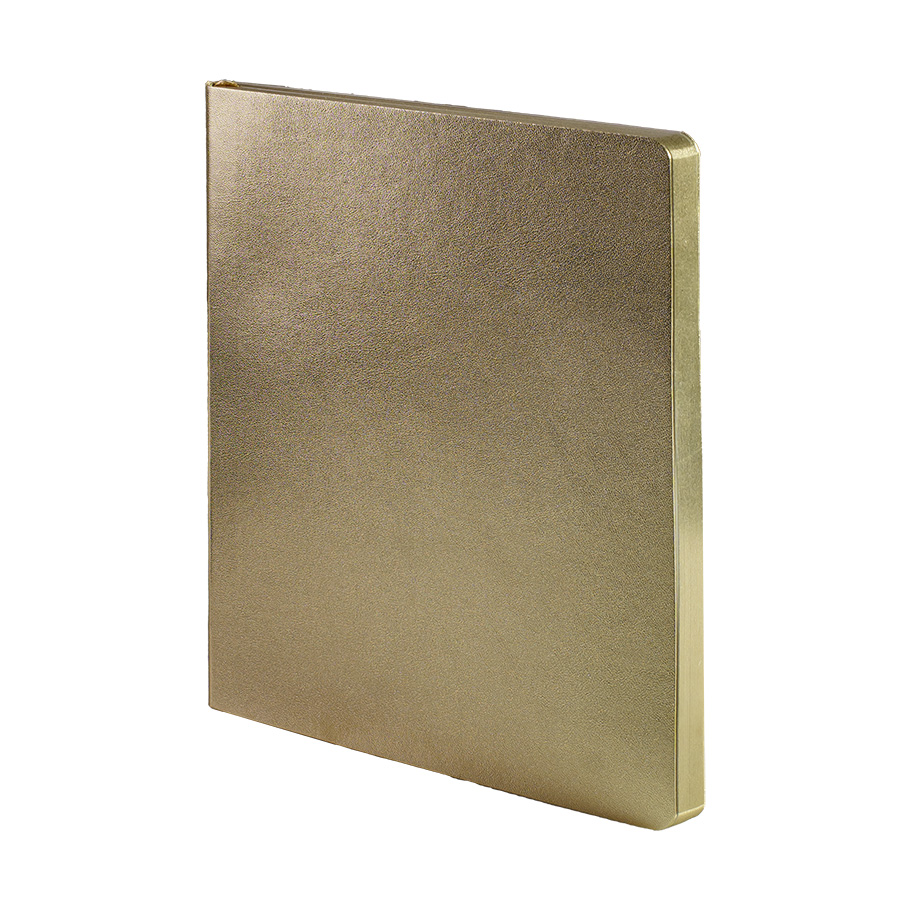 Бизнес-блокнот AURI в золотистом исполнении — сочетание современного делового стиля и премиального дизайна. Мягкий переплёт из нетермоактивного PU‑материала приятен на ощупь и визуально напоминает слиток благородного металла. Золотистый обрез страниц подчеркивает минималистичный образ, превращая рабочий инструмент в статусный аксессуар.Основные характеристики:Формат: 145×205 ммПереплёт: мягкий, из нетермоактивного PU‑материалаОбрез: золотистый, матовыйБлок: 256 страниц, кремовая эвкалиптовая бумага, плотность 70 г м²Разлиновка: клеткаУглы: скруглённыеЛяссе: ширина 7 ммДополнительно: перфорация на последних страницахУпаковка: черный сливбокс из переработанного картона+ бумагаВнутренний блок обеспечивает комфортное письмо и приятный визуальный контраст с золотистой обложкой. Упаковка защищает изделие при транспортировке и подчёркивает ответственное отношение к экологии.