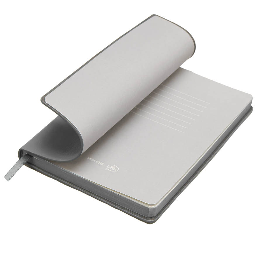 Бизнес-блокнот LADYЦвет обложки серый, близкий к Pantone 430СРазмер 150*210 мм, переплет мягкийОбложка - не термоактивный PU с эффектом кожи наппаБлок в клетку, скругленные углыСрез в цвет обложкиБумага кремовая, плотность 70 г м2Форзац нахцаз серый, близкий к Pantone 5 U Cool grey256 стр, перфорация на последних страницахЛяссе, 7 мм, в цвет обложкиУпаковка сливбокс + бумага