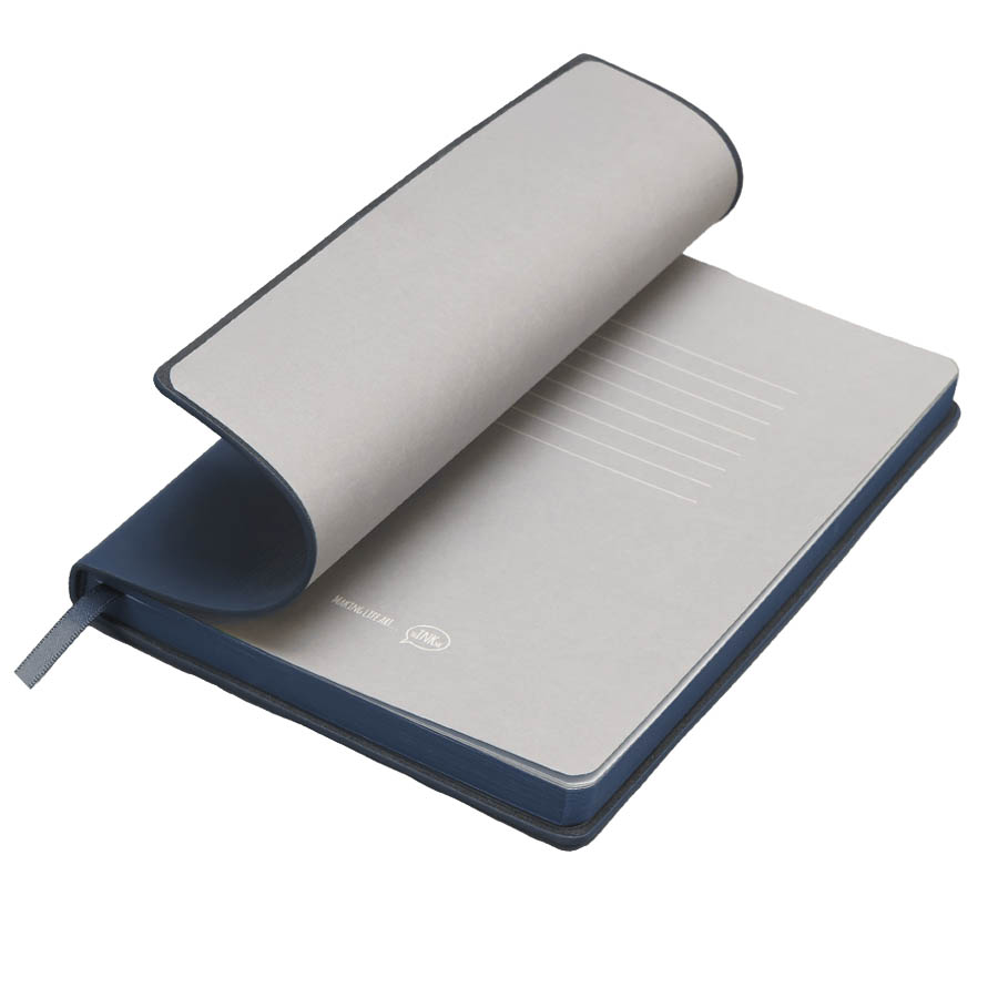 Бизнес-блокнот LADYЦвет обложки темно-синий, близкий к Pantone 2379CРазмер 150*210 мм, переплет мягкийОбложка - не термоактивный PU с эффектом кожи наппаБлок в клетку, скругленные углыСрез в цвет обложкиБумага кремовая, плотность 70 г м2Форзац нахцаз серый, близкий к Pantone 5 U Cool grey256 стр, перфорация на последних страницахЛяссе, 7 мм, в цвет обложкиУпаковка сливбокс + бумага