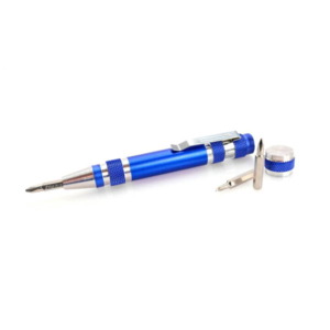 Мультитул с 6 аксессуарам. С нескользящим корпусом и металлическим зажимом. Включает в себя 6 плоских и крестообразных отверток.