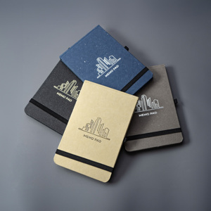 Блокнот MEMO с отрывными листами, размер 90*140 мм, обложка - переработанный картон, 64 листа из FSC кремовой бумаги, 70 г м2, резинка-пенхолдер и резинка для фиксации. Ручка в комплект не входит.