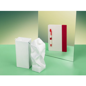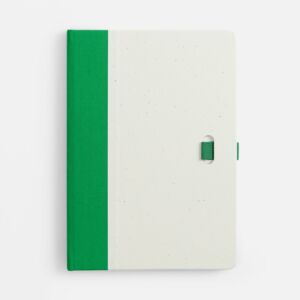 Бумага и обложка произведены из переработанных пакетов из под молока. Обложка из картона плотностью 140 г/м² .