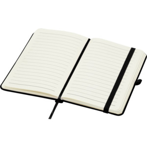 Блокнот Spectrum Plus формата А6 в твердой обложке с закругленными углами — это не только необходимая вещь в офисе, но и прекрасная возможность для продвижения вашего бренда. Картонный блокнот имеет мягкую на ощупь обложку и 80 линованных листов кремового цвета плотностью 70 г/м², идеально подходит для записи быстрых идей или длинных заметок. Блокнот оснащен петлей для ручки, эластичной застежкой, ленточкой-закладкой и карманом-гармошкой.