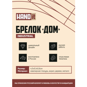Бренд HANDit — российский бренд изделий из дерева, акрила и ювелирной глазури. В линейке бренда новогодние игрушки, настольные игры и брелоки. Каждое изделие изготовлено вручную.