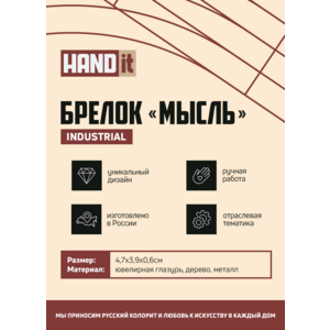 Бренд HANDit — российский бренд изделий из дерева, акрила и ювелирной глазури. В линейке бренда новогодние игрушки, настольные игры и брелоки. Каждое изделие изготовлено вручную.