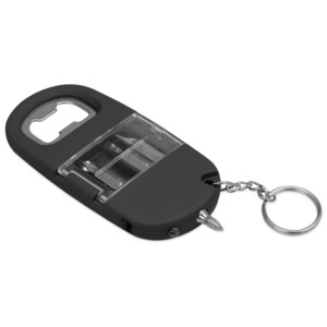 Брелок-открывалка с отвертками и фонариком "Uni", софт-тач, черный (Р)