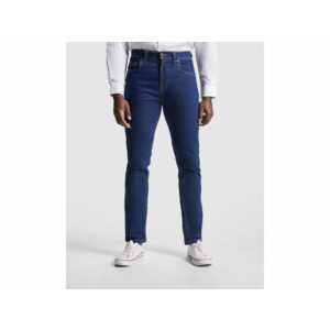 Джинсы мужские. · Классический крой и средняя посадка. · Пояс с 5 шлевками. · Застежка на металлическую молнию. · Два передних кармана и карман для монет. · Два задних кармана. · Полуприлегающий силуэт из ткани с эластаном.