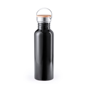 Стальная бутылка для воды в ретро-стиле. Завинчивающаяся крышка с деревянной вставкой и удобная ручка.