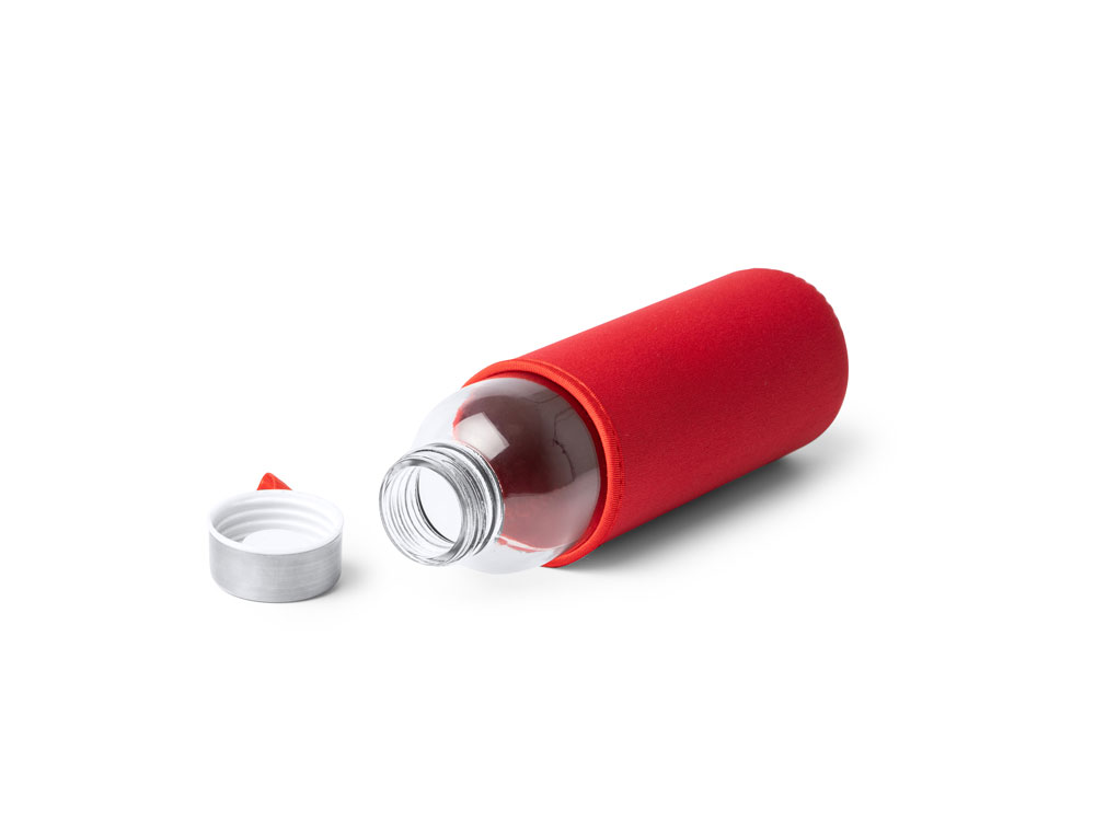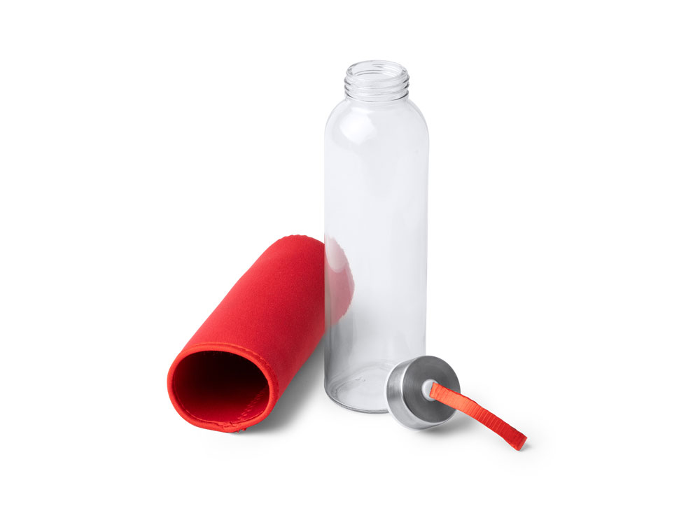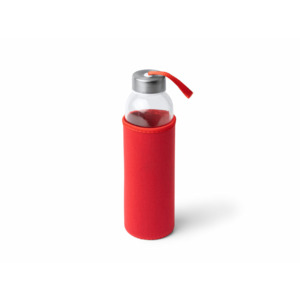 Бутылка стеклянная CAMU в чехле из неопрена, 500 мл, прозрачный/красный