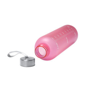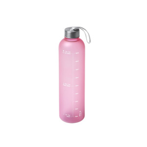 Бутылка для воды из пластика PCTG с полупрозрачным корпусом, навинчивающейся крышкой и ручкой для переноски. На корпусе есть шкала ёмкости и рекомендации по потреблению воды. Объем: 1 л. Поставляется в индивидуальной коробке.