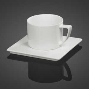 Изделия выполнены из белого фарфора, стильную чашку объемом 280 мл эффектно дополняет оригинальная форма блюдца.