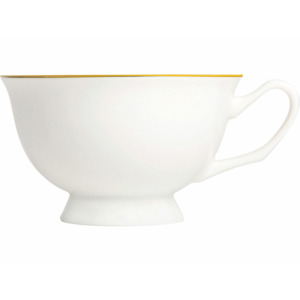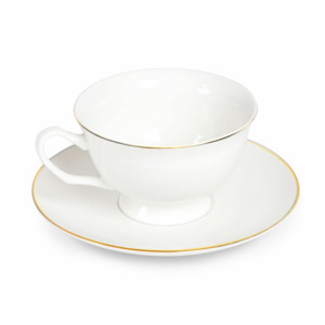 Изящная чайная пара с золотистым кантом от Eat&Bite создаст особенную атмосферу чаепития по-английски. Костяной фарфор очень лёгкий и тонкий и слегка просвечивается. Но несмотря на это, посуда из него достаточно прочная и прослужит вам долгие годы. Эта чайная пара прекрасно подойдёт не только для чая, но и для кофе. • Утончённый дизайн • Костяной фарфор • Подходит как для чая, так и для кофе Чайную пару рекомендуется мыть вручную с использованием мягких моющих средств и не использовать в микроволновке.