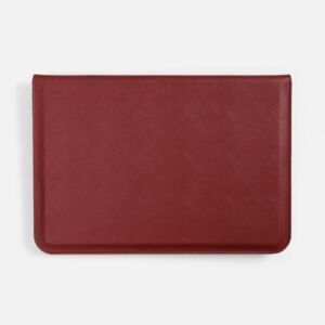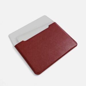 Чехол для ноутбука с диагональю до 15,6 выполнен из материала Petrus, красного цвета, дополнен окрашенным срезом края серого цвета.