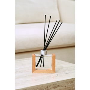 - Материал: флакон - стекло, палочки из файбера; подставка для флакона - дерево