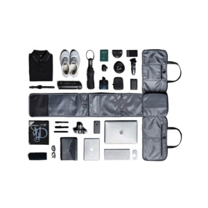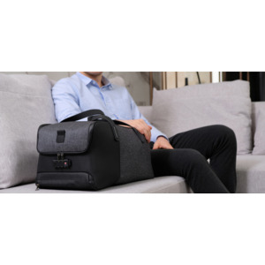 Дорожная сумка-трансформер FlexPack Go со съемным плечевым ремнем и прочными резиновыми ручками, обладатель премий Governor Cup Industrial Design Excellence Award, Upstyle Award 2018. Сделана из прочного устойчивого к порезам и трению водоотталкивающего многослойного полиэстера, не требующего специального ухода. Размер сумки 53х23 см, высота 26 см. Удобным дополнением служит возможность зарядки смартфона, для этого из внутреннего кармана на молнии 13х18 см для powerbank выведен USB-кабель, который соединен с портом на внешней стороне сумки. Внутри сумки есть 2 кармана 17х18 см, один 13х16,5 см и еще карман на клапане сумки 16,5х18,5 см. Дополнительно в сумке предусмотрены эластичные фиксаторы для одежды или других вещей с удобными креплениями в различных положениях. В комплект входят укладка на молнии для футболок и других мелких предметов одежды 20х18х11 см и укладка 23,5х19х8,5 см, которую можно зафиксировать на липучке внутри сумки, тем самым превратив ее в easy acsess карман, который можно разделить на 2 отделения откидывающейся перегородкой. Застежки молнии сумки блокируются на кодовый замок TSA007 с функцией таможенного досмотра. Особенностью сумки является возможность трансформации в плоскую укладку, которую легко хранить и брать с собой. Сумка оснащена стальным тросом, которым можно обхватить неподвижный предмет и затем зафиксировать бегунком молнии в кодовом замке. Дополнительно на боку сумки есть открытый карман 15х20 см с молнией на его дне, которая позволяет превратить карман в лямку для фиксации сумки на ручке чемодана. Вес сумки 1030 гр, объем 30 л. Сумка упакована в черную подарочную коробку размером 35х25х11 см.