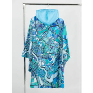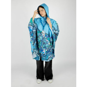 Легкий городской дождевик-пончо с регулируемым капюшоном из влагоустойчивого материала подходит для защиты в непогоду, свободно одевается поверх одежды и небольшого рюкзака.