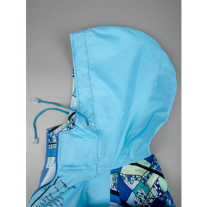 Дождевик с воротником на молнии и глубоким капюшоном со шнурком.