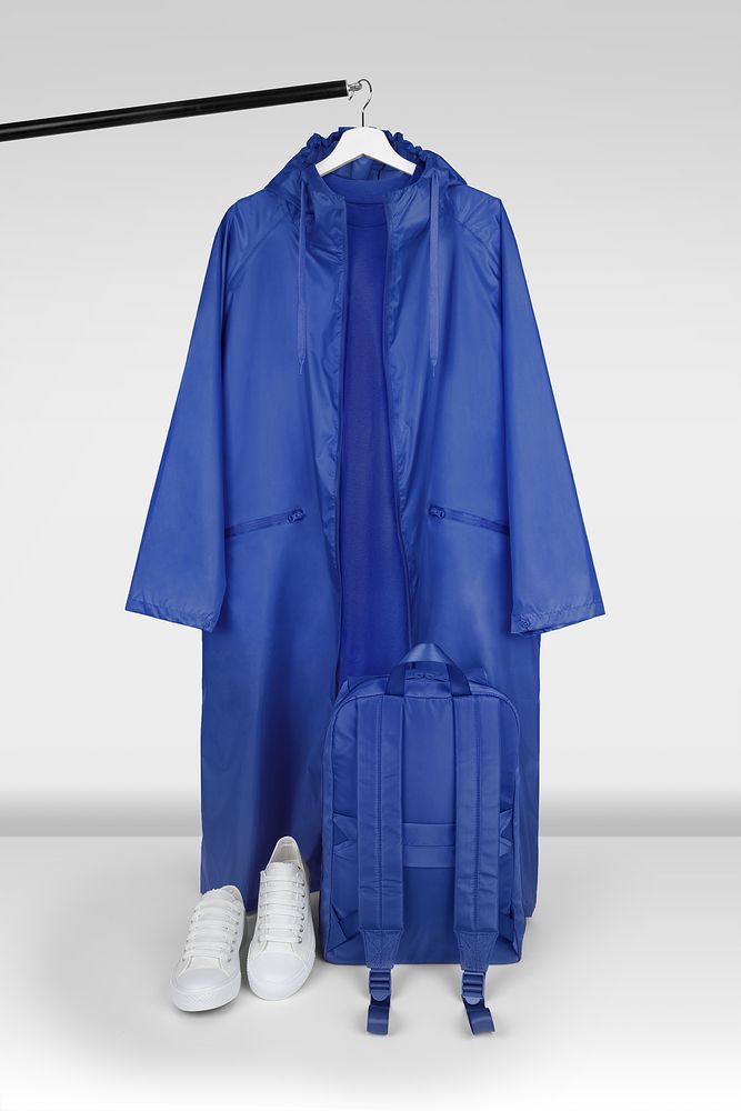 Плащ-дождевик на молнии с капюшоном из ткани таффета с полиуретановой пропиткой для защиты от сильного дождя.