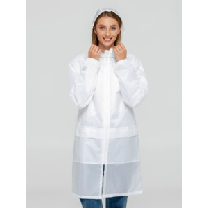 Плащ–дождевик на молнии с капюшоном и рукавами реглан. Ветрозащитные манжеты на рукавах.