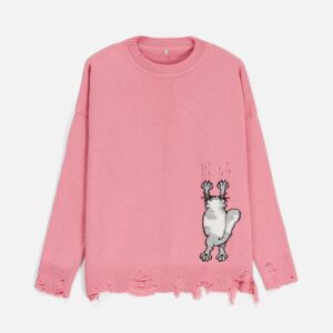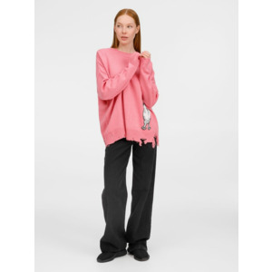 В дизайне мягкого джемпера с круглым вырезом Sharpick гранж-эстетика органично сочетается с милым акцентом — пушистым рисунком в виде озорного котика. Получается веселая вариация на тему того, откуда берется модная рваная одежда, а джемпер моментально создает настроение легкой несерьезности. Рваные края изделия добавляют современную нотку, а резинка на вороте, манжетах и по низу обеспечивает удобную посадку.