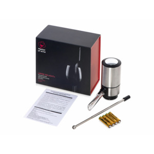 Автоматический аэратор от Master of Wine разливает вино по бокалам необычным образом: вам просто нужно установить его на горлышке бутылки и нажать на кнопку, и из трубки аэратора польется насыщенное кислородом вино. Как пользоваться: 1. наденьте трубку на нижнюю часть аэратора; 2. вытяните трубку так, чтобы кончик доставал до дна бутылки; 3. установите аэратор на горлышке; 4. откройте клапан аэрации, установив в режим «ON» 5. подставьте бокал под акриловую прозрачную трубку и нажмите на кнопку. Готово! Для промывки аэратора наполните бутылку чистой водой и прогоните весь объем через устройство. - прост в использовании - для тихих вин, которые нуждаются в аэрации - поставляется в комплекте с 4 батарейками ААА - фирменная упаковка бренда — уже можно дарить - эффектная подача + полезный аксессуар для ценителей изысканных вин.