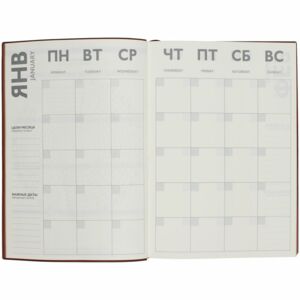 Ежедневник с гибкой обложкой и закладкой из искусственной кожи, дополнен капталом и двойным ляссе.