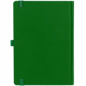 Ежедневник с твердой обложкой без поролона, выполнен из материала Soft Touch Ultra, зеленый FF, дополнен резинкой шириной 1 см, петлей-резинкой для ручки, капталом и ляссе ярко-зеленого цвета.