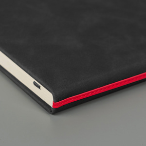 Ежедневник недатированный Muse, черный, формат А5, с декоративной красной полосой, блок в линейку