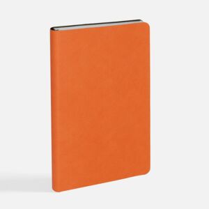 Ежедневник с гибкой обложкой, выполнен из материала Petrus, оранжевый ОО, дополнен серым ляссе с металлическим шильдиком.
