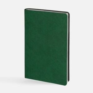 Ежедневник с гибкой обложкой, выполнен из материала Petrus, зеленый FF, дополнен серым ляссе с металлическим шильдиком.