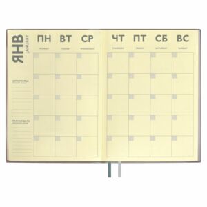 Ежедневник с гибкой обложкой и закладкой из искусственной кожи, дополнен капталом и двойным ляссе.