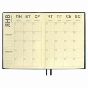 Ежедневник с гибкой обложкой и закладкой из искусственной кожи, дополнен капталом и двойным ляссе.