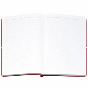 Ежедневник с гибкой обложкой выполнена из материала Nice Touch, красный и Latte, красный (внутренняя часть обложки), дополнен горизонтальной резинкой в цвет обложки. Внутри корешка — специальное место для крепления ручки размером до 15х1 см.