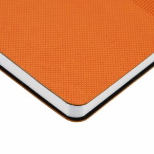 Ежедневник с гибкой обложкой, выполнен из материала Canyon, оранжевый ОО, дополнен ляссе в цвет обложки. Блинтовое тиснение на обложке создает эффект вязаного полотна.