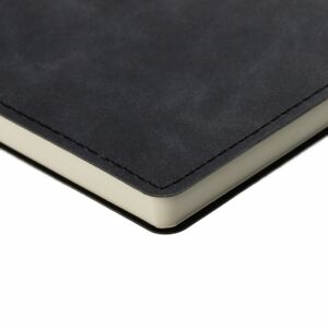 Ежедневник 17х24 см, с гибкой обложкой, выполнен из материала Nubuck Touch, черный АА, дополнен петлей-лейблом для ручки и двойным ляссе в цвет материала.
