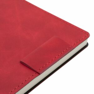 Ежедневник 17х24 см, с гибкой обложкой, выполнен из материала Nubuck Touch, красный РР, дополнен петлей-лейблом для ручки и двойным ляссе в цвет материала.