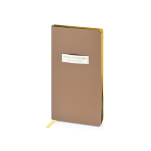 Еженедельник А6 с нашивкой — компактный и стильный вариант для планирования недели, заметок и коротких рабочих записей. Гибкая обложка из искусственной кожи с мягкой фактурой выглядит строго, а светлая нашивка добавляет аккуратный дизайнерский акцент. Золотой обрез подчёркивает характер модели и красиво смотрится вживую. Внутри — недатированный блок формата А6 (84×160 мм) на бежевой бумаге 80 г/м². Книжный переплёт хорошо раскрывается, а скруглённые углы одновременно придают еженедельнику премиальный вид и защищают края при носке. Ляссе‑закладка выполнена в цвет обложки и помогает быстро находить нужную страницу.